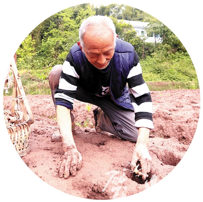 見到申光財時,他正蹲在地里栽種著姜苗。不一會,原本裝滿姜苗的籃子變空,原本荒蕪的土地增添了一縷生機。“不好意思讓你們等久了,我們去院子里聊吧。”干完手里的活,申光財對記者說道。