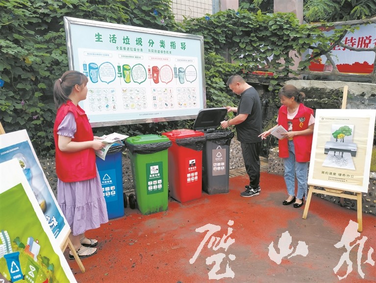 “電池、廢棄口罩、殺蟲劑都屬于有害垃圾……”7月2日,河邊鎮(zhèn)組織開展黨政機關(guān)垃圾分類宣傳活動,將垃圾分類常識普及到每一位干部職工。