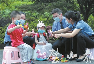 近日,區檢察院的檢察官走進區社會福利院,為孩子們送去禮物,陪他們玩耍,送上璧檢人的關心與祝福。(記者 謝捷 攝)
