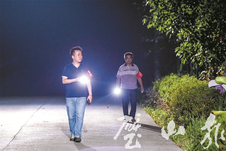 9月2日,璧泉街道鷹嘴社區的黨員干部在社區夜巡走訪。近年來,璧泉街道將加強治安巡邏工作作為提升公眾安全感的重要抓手,在抓好治安專職巡邏隊的基礎上,發動街道黨員、村社干部開展夜間義務治安巡邏,積極構建群防群治巡邏防控體系,消除社會穩定“空白地帶”,擠壓犯罪空間,取得了良好的社會效果。
