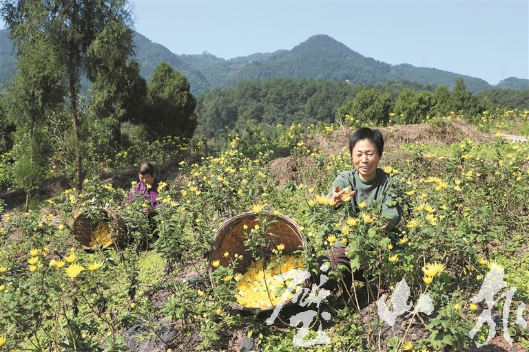 村民采摘金絲皇菊