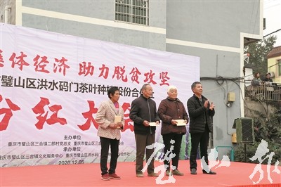 12月5日,三合鎮(zhèn)二郎村便民服務(wù)中心前人潮涌動,熱鬧非凡,由三合鎮(zhèn)二郎村黨總支、村委會主辦的璧山區(qū)洪水碼門茶葉種植股份合作社分紅大會正在這里舉行。