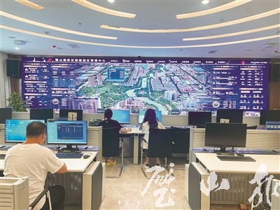 璧山高新區(qū)智慧園區(qū)指揮中心內(nèi),工作人員正在實時監(jiān)控各企業(yè)安全環(huán)保實時數(shù)據(jù)。