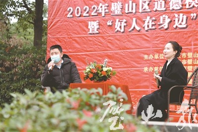 “在創(chuàng)新基層治理方式方法上,您有什么高招和絕招,能跟大家展開講講嗎?”“好的。無論是‘鄉(xiāng)鄰說事’‘德賢明理堂’,還是我們的院管會(huì)都是完善基層自治議事制度的措施……”微訪談現(xiàn)場(chǎng),主持人提問后,林平一一道來。在一問一答的形式中,現(xiàn)場(chǎng)觀眾深入了解了林平如何扎根基層,通過短短5年的時(shí)間,將一個(gè)基礎(chǔ)設(shè)施薄弱,發(fā)展滯后的“后進(jìn)村”,發(fā)展為“黨旗紅”“產(chǎn)業(yè)興”“治理順”的先進(jìn)村的故事。微訪談結(jié)束后,大家還參觀了2022年度璧山區(qū)道德模范、身邊好人先進(jìn)事跡專題展覽。