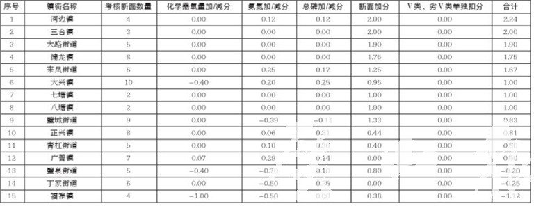 2022年12月璧山區(qū)“三河”流域水質(zhì)考核鎮(zhèn)街及管委會加/減分情況匯總表