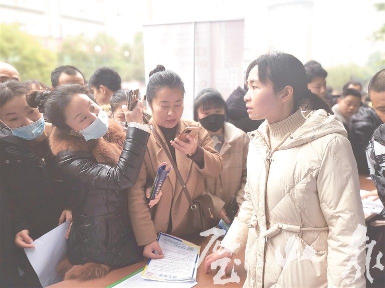 招聘會現場人頭攢動,招工、求職“供需兩旺”。求職者拿著各式各樣的宣傳資料穿梭在企業的招聘臺前,詢問崗位信息、工資待遇。企業的招聘人員熱情地向每一位路過的求職者介紹公司的性質、薪資及福利待遇。