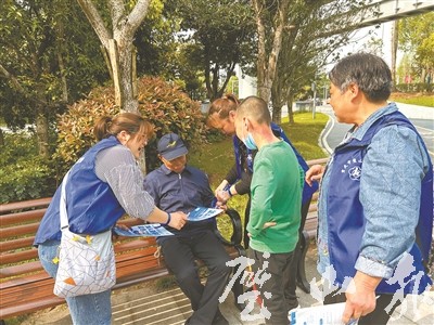 志愿者和孤獨(dú)癥兒童發(fā)放宣傳單