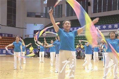 “讓我們快出發,就像小時候,一樣的,去玩耍……”4月18日,伴隨著熱情洋溢的啦啦操《向快樂出發》,璧山區“全民健身月”活動在區體育館正式啟動。