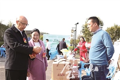 “這個(gè)酒是我們酒廠的金字招牌,全部采用上好糧食釀造,度數(shù)不高、口感很好?!苯?,在福祿鎮(zhèn)舉辦的鄉(xiāng)村小集市上,商販吳廣華向區(qū)、鎮(zhèn)人大代表介紹著自家產(chǎn)品,人大代表們仔細(xì)查看酒瓶包裝,詢問原料、釀酒工藝及銷售情況。