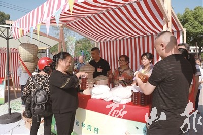 5月17日上午,河邊鎮鹽井河村書香廣場人頭攢動,熱鬧非凡。當天,“萬企興萬村”活動之“政府搭臺、村民擺攤、企業趕場”暨“我到河邊買個菜!”活動舉行。