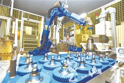 在龍潤轉(zhuǎn)向的生產(chǎn)車間,數(shù)十臺揮舞著“手臂”的機器人有條不紊地運轉(zhuǎn),智能化生產(chǎn)線開足馬力運行,各個環(huán)節(jié)的生產(chǎn)數(shù)據(jù)經(jīng)過匯總分析,在中央控制室的總控屏幕上即時呈現(xiàn)。“智能化、綠色化改造讓公司產(chǎn)能得到有效釋放,生產(chǎn)效率較改造前提升近1倍,生產(chǎn)成本降低25%左右。”龍潤轉(zhuǎn)向總工程師何德龍說。