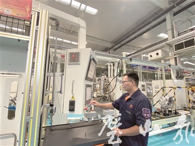 7月27日,青山工業嘈雜的變速器總裝生產車間里,在大大小小的機床、高高低低的工具架圍成的一角,王周正拿著筆記本電腦調試設備,一絲不茍、聚精會神。