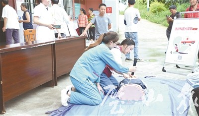 活動(dòng)現(xiàn)場(chǎng),醫(yī)護(hù)人員以快板的形式為群眾宣傳合理用藥知識(shí),現(xiàn)場(chǎng)演示心肺復(fù)蘇、氣道異物梗阻的急救處理及夏季防溺水知識(shí),并開(kāi)展健康義診,送去家庭小藥箱,切實(shí)增強(qiáng)村民健康生活、安全用藥意識(shí)。