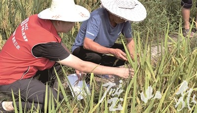 8月4日,在丁家街道新民村,人保財險璧山支公司農險部工作人員正在對農戶唐永賢的水稻田進行查勘定損,理賠賠款將于七個工作日內交付至他手中。
