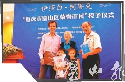 2019年7月30日,伊莎白·柯魯克與家人在“重慶市璧山區(qū)榮譽(yù)市民”授予儀式現(xiàn)場(chǎng)。