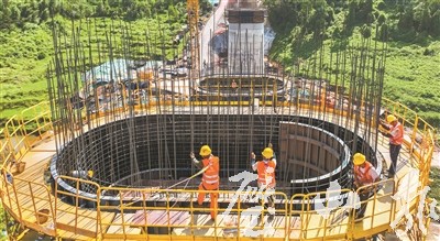 9月7日,成渝中線高鐵千秋堰雙線特大橋施工現場,施工人員正在加緊作業。由中鐵四局承建的千秋堰雙線特大橋位于璧山區境內,全長1320米,預計9月底首個空心橋墩封頂。