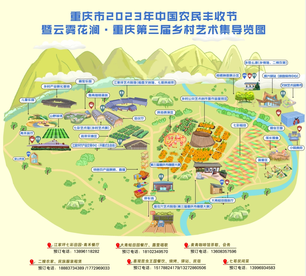 重慶市2023年中國農民豐收節暨云霧花澗·重慶第三屆鄉村藝術集活動將于9月23日在七塘鎮將軍村江家坪·七彩田園拉開帷幕。活動緊扣“慶豐收 促和美”主題,以“七彩田園、葵花斗艷、大美田園”為背景,以“藝術賦能鄉村振興”為路徑,依托江家坪七彩田園,升級打造“集、藝、戲”三大板塊的系列主題活動,主要包括參觀類活動和參與類活動,充分展示璧山農業新成就、農村新風貌、農民新風采。