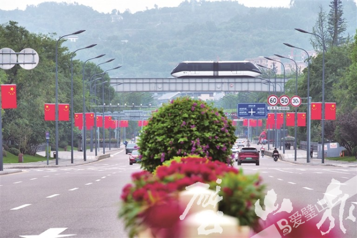 璧山街頭國旗飄揚,處處洋溢喜慶節日氛圍。
