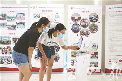 10月12日,璧泉街道華龍社區,智能機器人引導社區居民辦理業務。據悉,近年來,我區高度重視信息化、網絡化和智能化建設,積極推進以5G為主的新型基礎設施建設,通過移動互聯網、信息智能終端等新一代信息技術的推廣使用,百姓切實感受到了“智慧服務”給生產生活帶來的便利。(記者 楊文廣 攝)