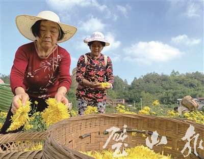 眼下,大興鎮萬民村迎來了“繁花似錦”的美麗時光——種植的300畝金絲皇菊進入采收期,其兼具觀賞價值與經濟價值,畝產值超萬元。