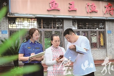 【來了就是璧山人 共創全國文明城】 區城市管理局 開展餐廚垃圾專項整治行動 工作人員指導餐飲經營者填報餐廚垃圾相關資料