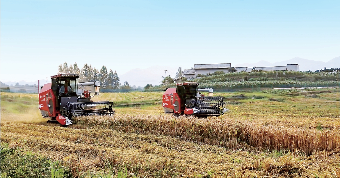 5月15日,在七塘鎮(zhèn)建設(shè)村超級小麥種植基地,顆顆飽滿金黃的麥穗隨風(fēng)搖曳,兩臺收割機開足馬力作業(yè),田間地頭一派豐收的喜人景象。據(jù)了解,璧山區(qū)超級小麥試驗項目于2023年8月引進,現(xiàn)已有大穗大粒、多穗小麥、巨麥等超級小麥新品種10余個。目前,該基地種植的200余畝超級小麥進入豐收測產(chǎn)階段,試驗區(qū)小麥畝產(chǎn)預(yù)計超過800斤/畝,最高產(chǎn)量將超過1200斤/畝。(記者 覃雪 攝)