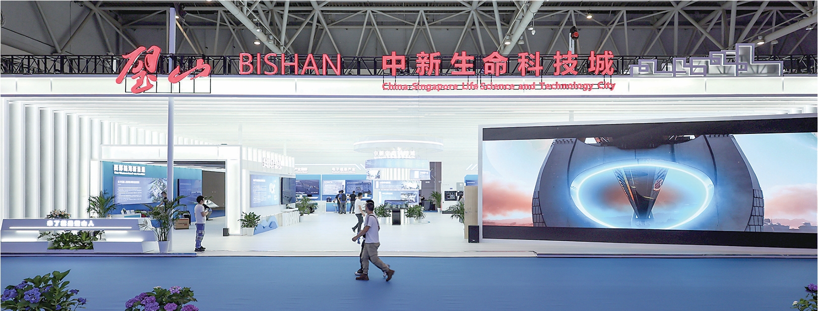 西洽會璧山展館位于重慶國際博覽中心N8現代制造業展區A02展位,面積621平方米,處于現代制造業展區核心展示區域。展館遵循極簡風的設計風格,以中新生命科技城為設計元素,搭配大量諸如璧山云巴、狀元橋、重慶狼隊電競館、夢界空間數字經濟產業園、新加坡魚尾獅、新加坡生命樹等璧山和新加坡相關元素。展館整體觀感通透、大氣,將藝術感和科技感完美融合。布局有西部陸海新通道、成渝地區雙城經濟圈、中新生命科技城、智能網聯新能源汽車產業集群、電子信息產業、智能裝備、生命科技、數字經濟、先進材料等10個展區。各展區分別展出了極具代表性的企業及展品。