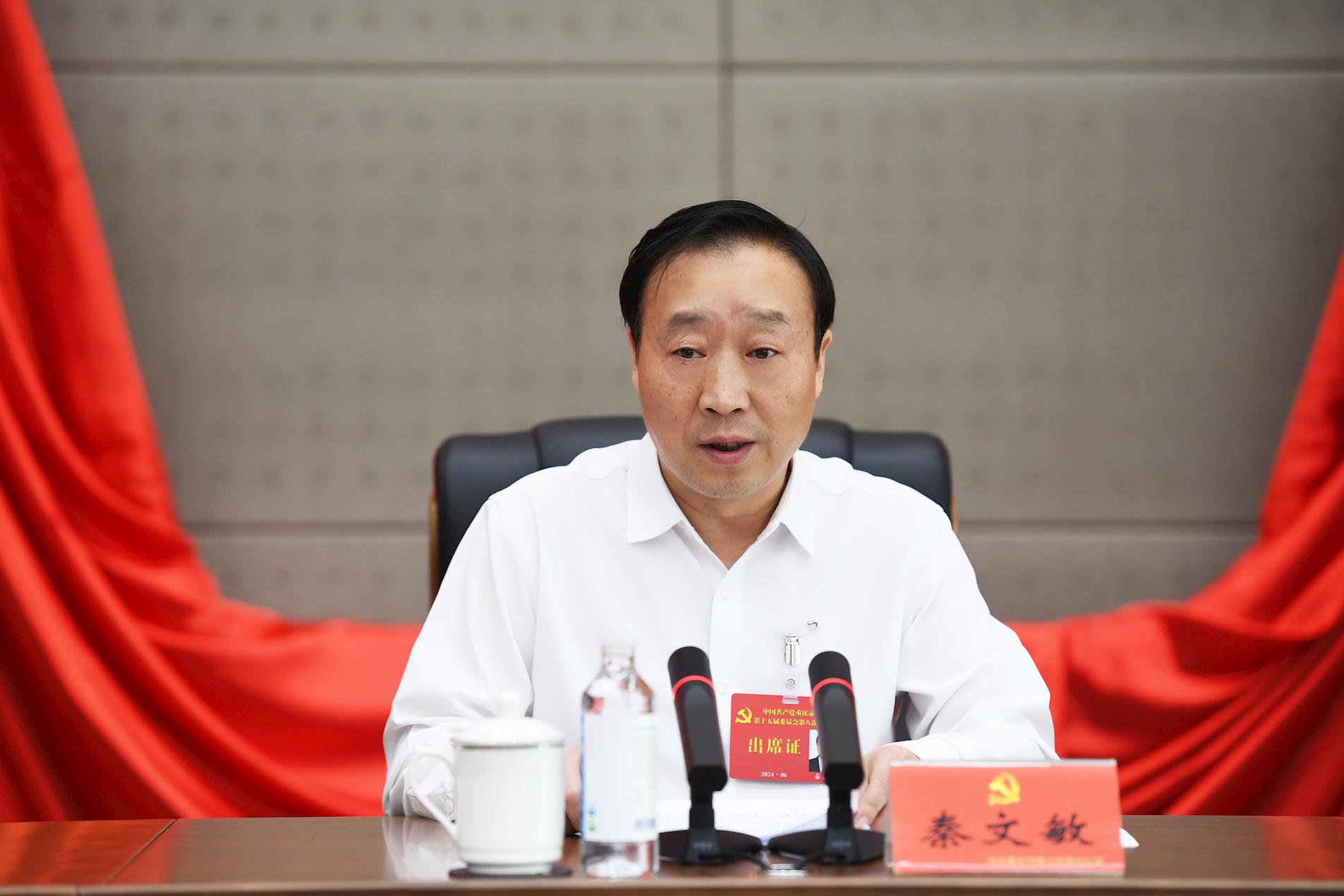 區委常委會主持會議。區委書記秦文敏講話。區委副書記、區長江志斌,區人大常委會主任張獻強,區政協主席何平,區委副書記唐軍出席。