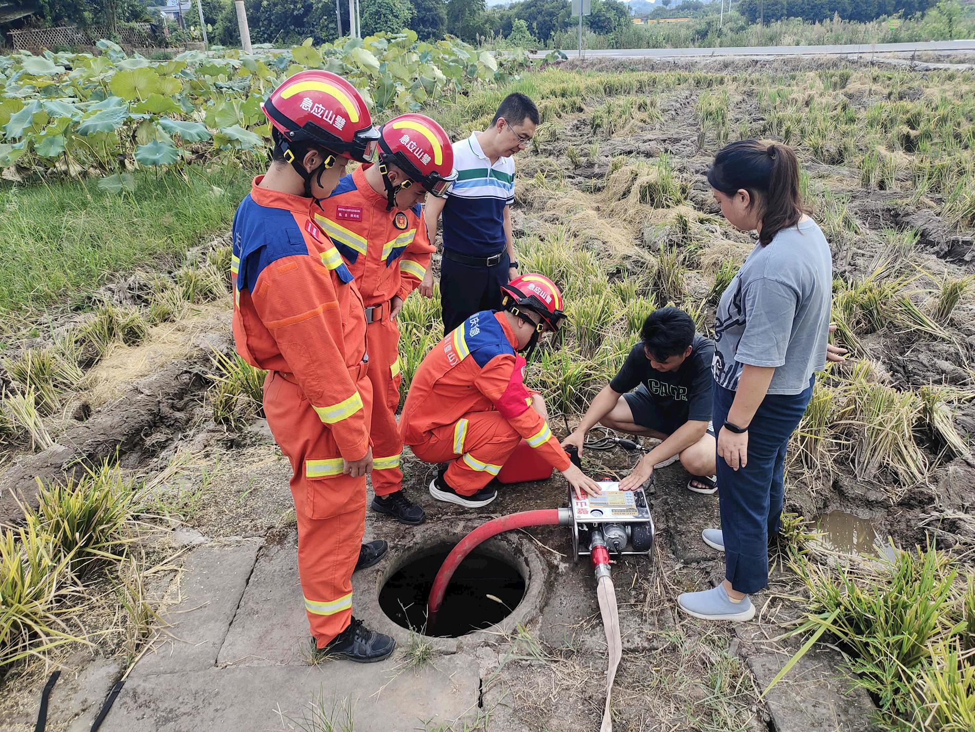 應急救援隊員講解背負式抽水泵使用方法