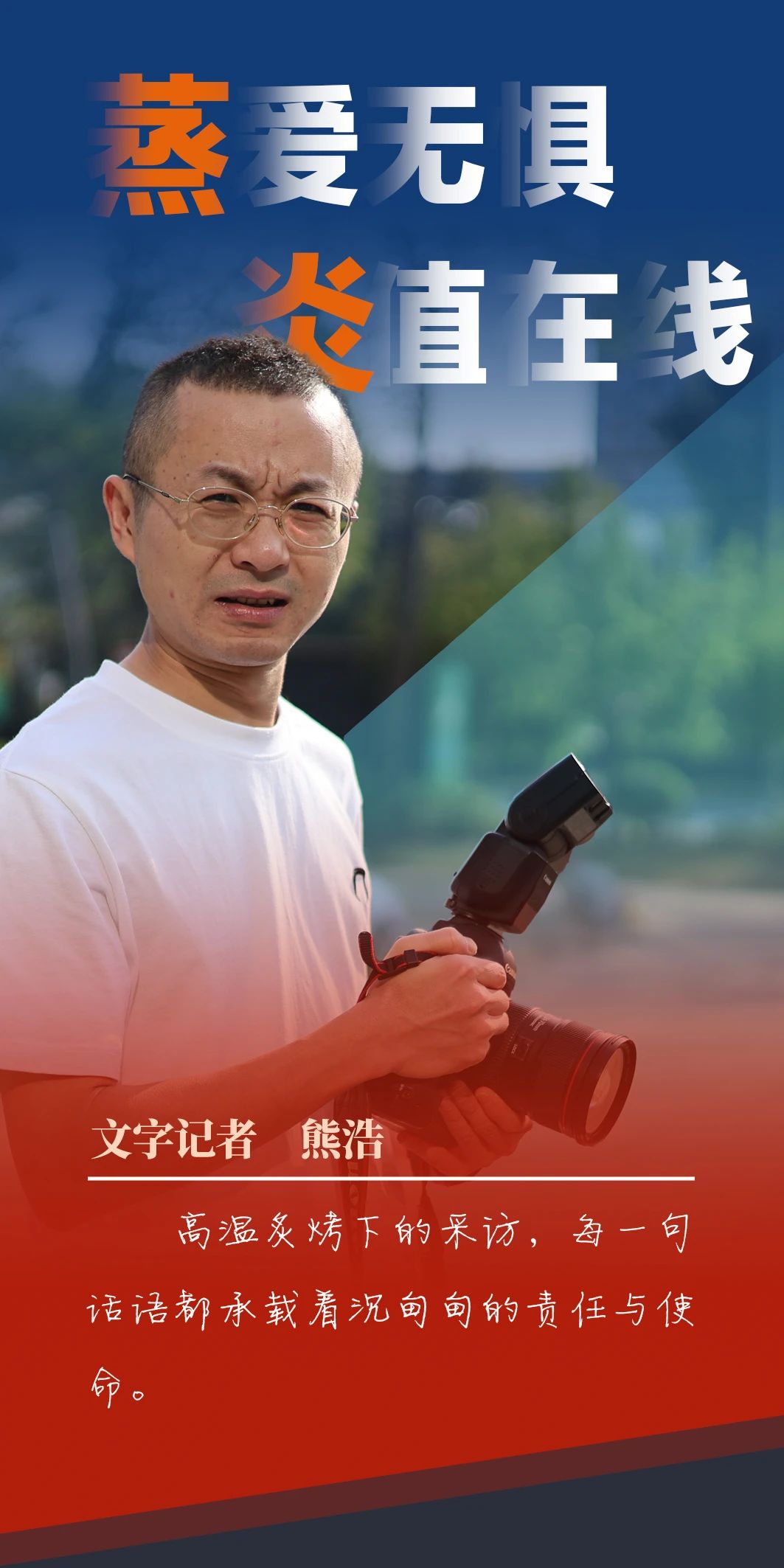 高溫炙烤下的采訪,每一句話語都承載看沉甸甸的責任與使命。