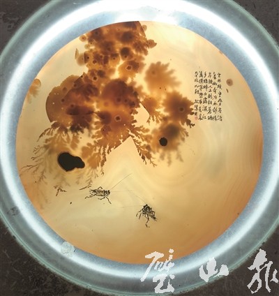 肉眼看過去,玉石似乎沒有什么變化,只有通過放大鏡的加持,才能看得清楚象牙上呈現的文字和書畫。