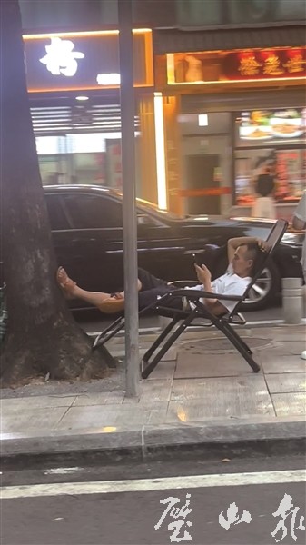 近日,一市民坐在行道樹旁,將腳隨意搭在了樹干上,這種不文明行為不僅損害了樹木的健康,也影響了城市的整體形象。