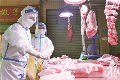 8月8日,璧城衛生院檢驗科人員聶飛飛和同事分別在各農貿市場、人員密集場所等地,采集疫情防控樣品。