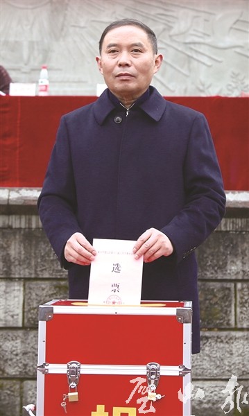 選舉投票現場井然有序,氣氛莊重,何平和眾多選民一起仔細聆聽選舉事項說明,并領取選票,認真填寫選票,與廣大選民一起投下神圣而莊嚴的一票。