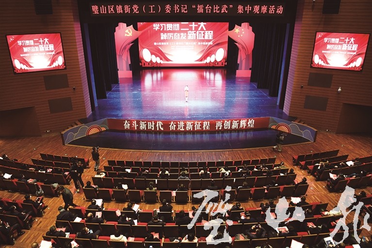 去年5月12日,璧城街道楊柳壩社區東福宏洲小區內,6個社區的黨組織書記先后上“擂臺”,圍繞“老舊社區改造”主題分享經驗、暢談體會,表態下步努力方向;7月1日,全區村(社區)黨組織書記“擂臺比武”集中觀摩活動在文化藝術中心大劇院上演,書記們用一場別開生面的“沙場點兵”;12月29日,來自璧山區15個鎮街的黨(工)委書記帶著鄉野田疇的“泥土氣息”,帶著深情厚意的為民情懷,也帶著鄉村振興的“看家本領”,在2022年度鎮街黨(工)委書記“擂臺比武”集中觀摩活動現場講經驗、比思路、曬實績、展風采、話振興……