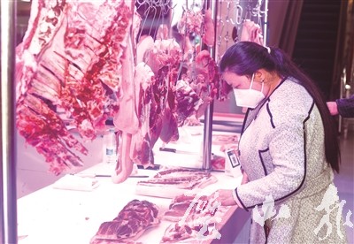 市民在農(nóng)貿(mào)市場(chǎng)購(gòu)買豬肉