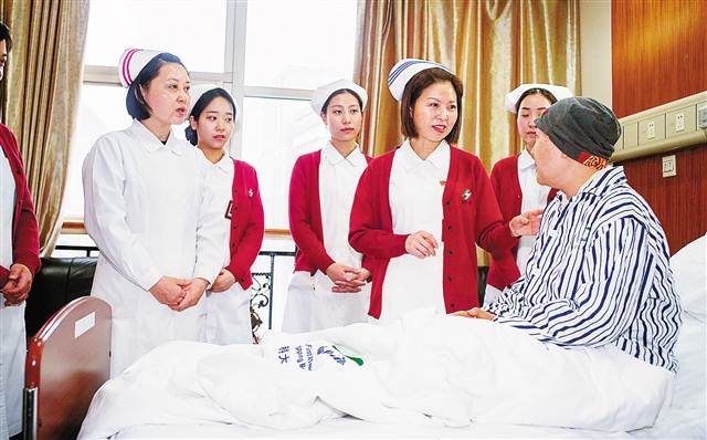 趙慶華(右三)帶領年輕護士查房。首席記者 崔力 攝(資料圖片) |