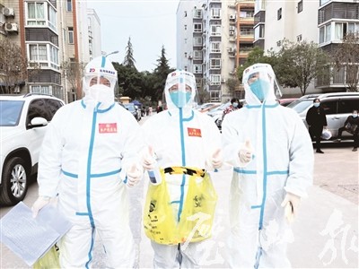 張孝利(中)和社區工作人員即將前往小區入戶采樣