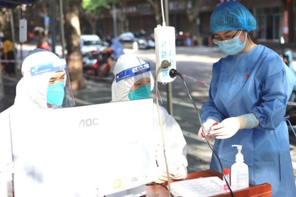 高溫下的堅(jiān)守--黨員先鋒在抗疫一線(xiàn)。璧山區(qū)衛(wèi)生健康委供圖
