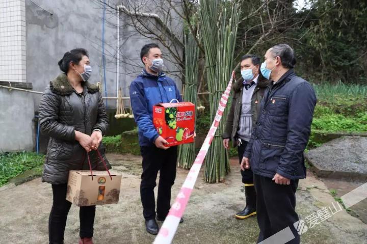 福祿鎮(zhèn)非公組織聯(lián)合黨支部書記蔡金東(右一)為福祿鎮(zhèn)湖北返鄉(xiāng)居家隔離群眾免費(fèi)送上血橙、柚子等水果。