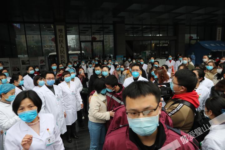 在出征儀式上,區長秦文敏也來到現場為隊員們加油鼓勁。秦文敏表示,在這個特殊的時期,黨和政府需要你們,人民需要你們,希望每一位“戰士”都拿出勇氣,勇往直前,代表璧醫人,不負眾望,救死扶傷。黨和政府會傾盡全力,做好出征隊員的醫療和安全保障,祝愿大家平安凱旋。