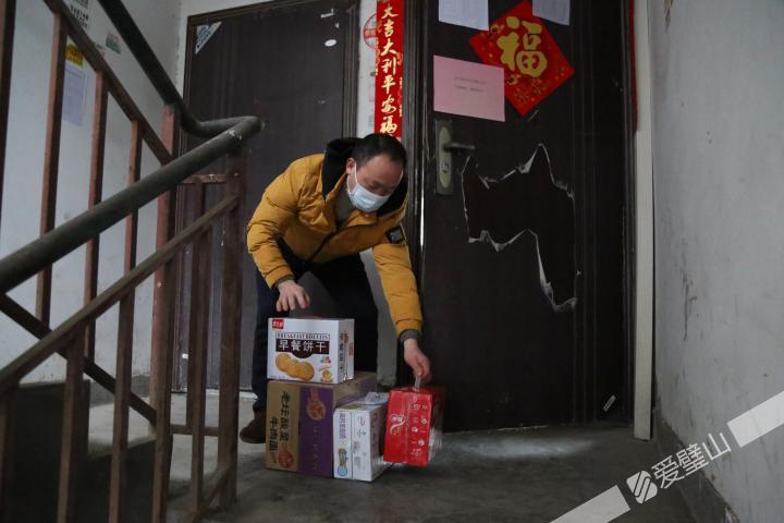 “你好,我們給你送些生活必需品,已經(jīng)放在門口,還需要什么東西隨時(shí)跟我們說。”2月15號(hào)上午,青杠街道石河居民區(qū)臨時(shí)黨支部幾名黨員來到居家隔離人員田先生家門前,把生活用品放下后,打電話叮囑。
