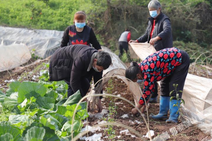12日,在福祿鎮(zhèn)紅山村,菜農(nóng)王光中的蔬菜田里一片忙碌的景象。春節(jié)以來(lái),王光中每天要向批發(fā)市場(chǎng)供應(yīng)400斤左右的茼蒿、冬莧菜等時(shí)令蔬菜,近日天氣晴好,王光中緊抓有利時(shí)機(jī),移栽新一季的四季豆苗,做到春收春播兩不誤。(記者 黃瑞 攝)