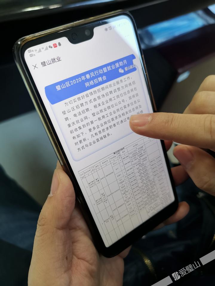 區就業和人才服務中心主動作為,多措并舉,為企業和求職者建立起網絡服務平臺,實現“就業服務不打烊”。一方面利用區人力資源市場招聘網絡軟件及“璧山就業”微信公眾號平臺,架設網絡招聘會直通窗口,運用大數據匹配技術,精準對接勞動力供需。另一方面,廣泛發動企業和求職者進行線上招聘活動。