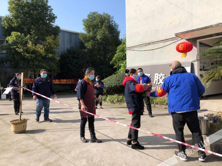 “復工前,我們向員工發出倡議書,讓他們提前了解復工防控措施,每天為員工發放一個醫用口罩,一個棉紗口罩使用,并在廠區設置了專用的隔離區用于醫學觀察,對于有突發異常的員工做好隔離的準備。”劉君虹說。