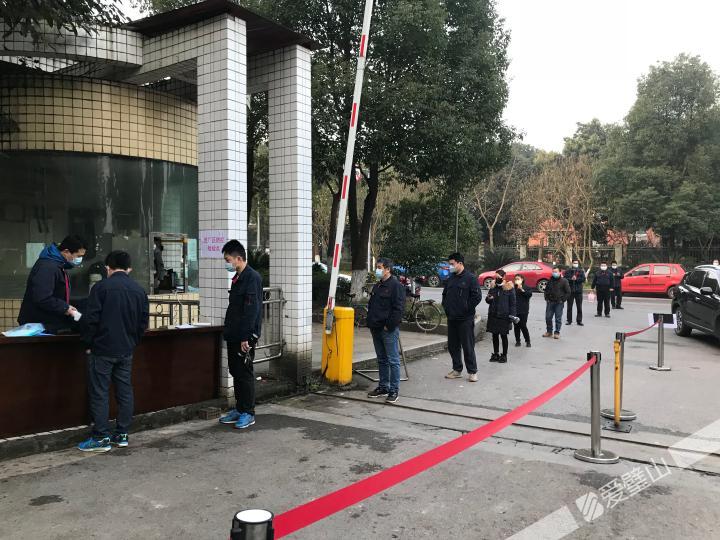 2月18日,上午7時許,在重慶山青機械制造有限公司,該公司工作人員對每位進出公司的復工人員進行體溫檢測、口罩發放,并對進出車輛進行噴灑消毒。入場的工人穿戴整齊,間隔約1米排著長長的隊伍,依次接受體溫測量后陸續走上工位。