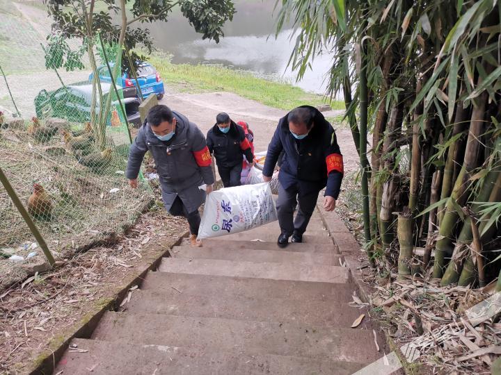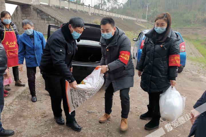 “老陳,出來領農資了哦!”219日,在來鳳街道鹿河村7組,村干部和志愿者一起,為村民陳肇文送來了復合肥、苞谷種和稻谷種。