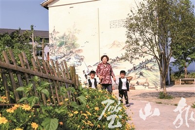 據喜觀村黨支部書記李國洪介紹,為了改變院落現狀,提升百姓居住環境品質,鎮里不僅投入真金白銀硬化了村組道路,新建了地下污水管網,規范了家禽養殖,還拆除了部分舊房用以改建休閑涼亭,并在房前屋后村道沿線栽植了各色花草。村莊環境整飭一新后,鎮里還因地制宜,在農戶院墻上打造了以“漁樵耕讀”為主題的壁畫,為美麗鄉村建設增色添彩。