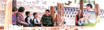 七塘鎮喜觀村,三五成群的村民在涼亭里聊天。