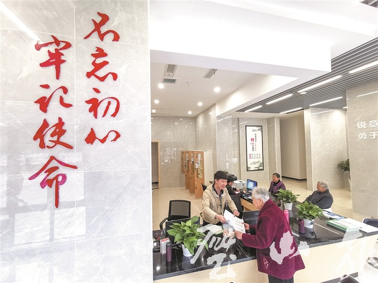 鳳凰社區,社區工作人員對來社區服務大廳咨詢、辦理業務的居民細心服務。